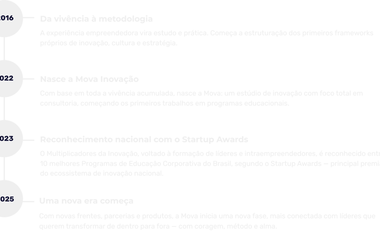 Mova é verbo. É impulso, é transformação. Nasceu da vontade de provocar movimento real — na forma como pensamos, sentimos, criamos e entregamos valor.